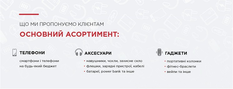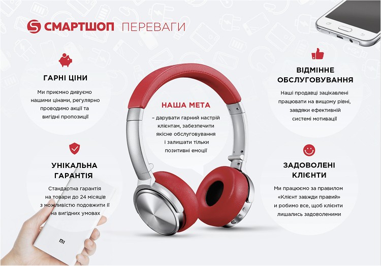 СМАРТШОП – українська спеціалізована мережа магазинів гаджетів і аксесуарів. Ми пропонуємо нашим клієнтам товари по вигідним цінам та якісне обслуговування. Компанія СМАРТШОП створена у 2004 році. На сьогодні ми маємо понад 90 магазинів у різних областях України: Київська, Вінницька, Житомирська, Львівська, Полтавська, Хмельницька, Чернігівська, Дніпропетровська, Волинська, Тернопільська. Магазини СМАРТШОП працюють у різних форматах: від власних окремих просторих павільйонів до невеликих торговельних точок у супермаркетах.